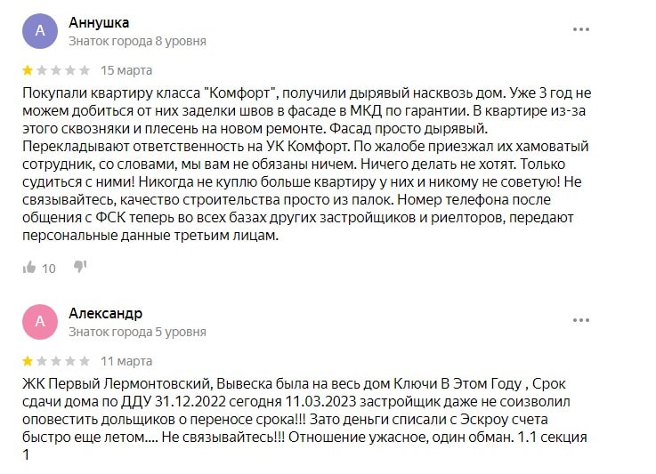 Если рассматривать репутацию девелопера в интернете, здесь тоже все неоднозначно. На Яндекс Картах можно встретить критику в отношении ЖК, построенных ГК ФСК, однако позитивных мнений не меньше.